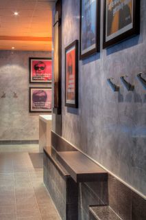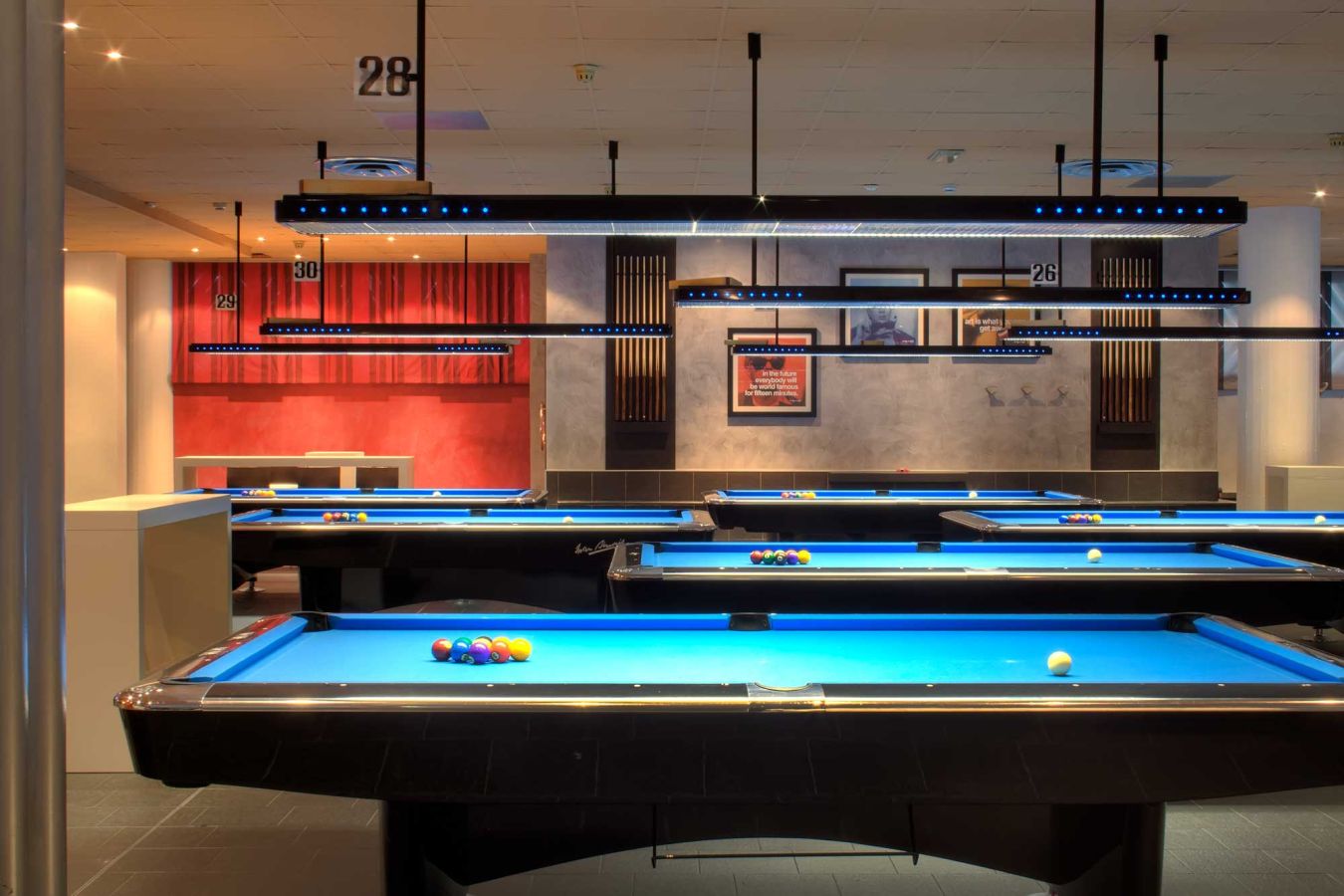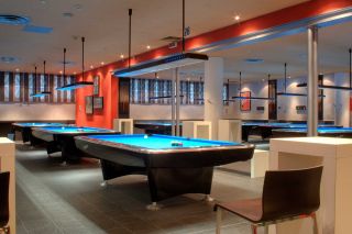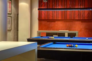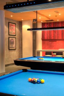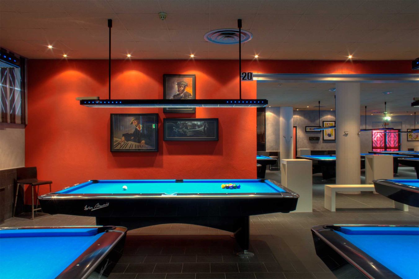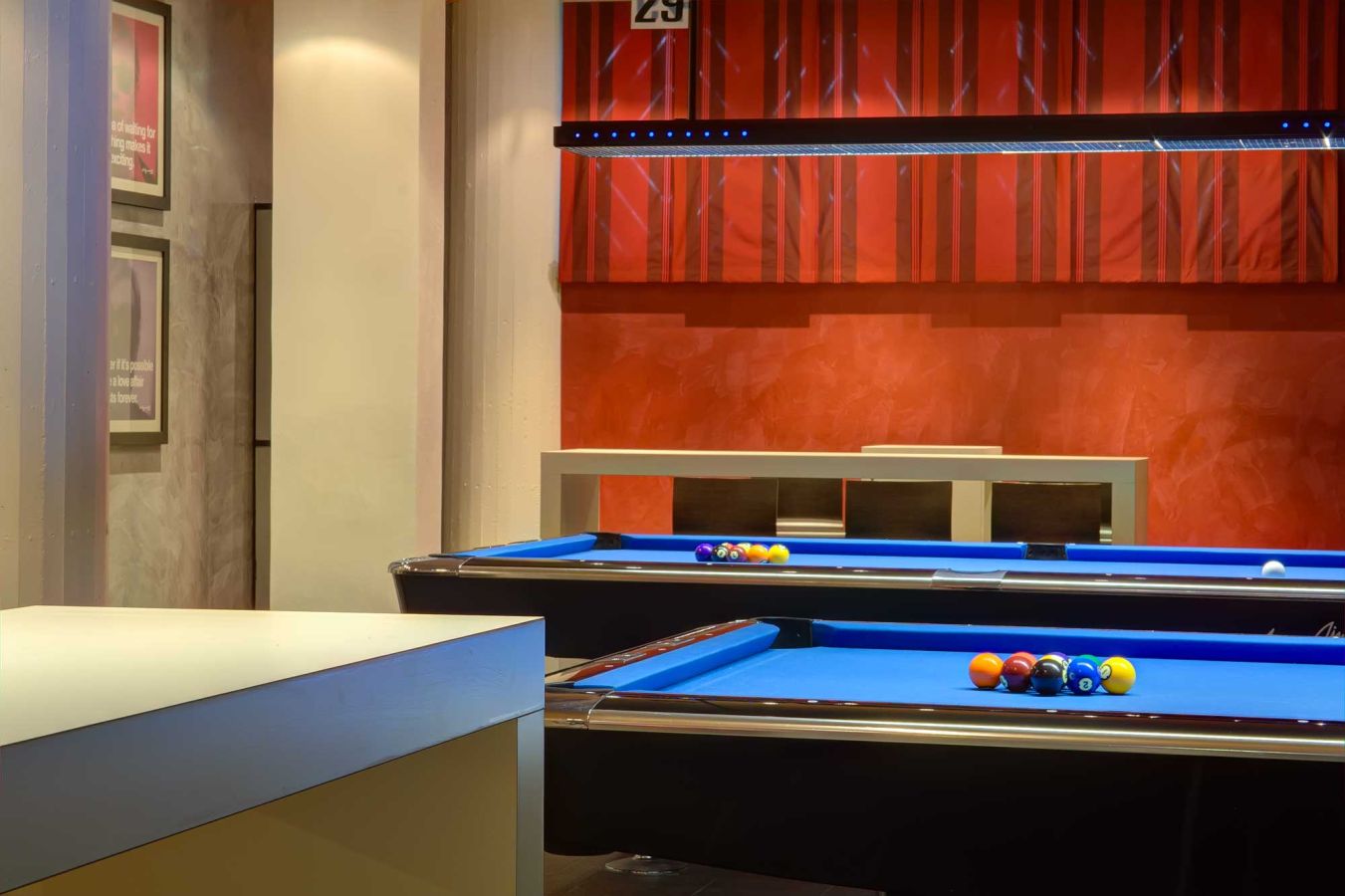 La ristrutturazione di questa sala biliardo si è concentrata su tre elementi chiave: il ridisegno delle pareti, l'inserimento di una struttura in acciaio che ridefinisce l'apertura tra gli ambienti, e la creazione di arredi custom-made, pensati e realizzati appositamente per valorizzare lo spazio.